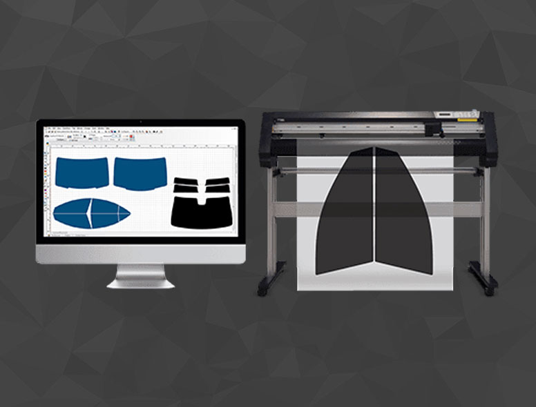 The system uses a computer and a plotter that comes with a database that allows us to pre-cut film by choosing the year, make and model of the vehicle to have a perfectly fitted pattern.